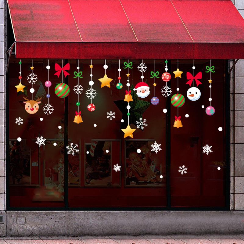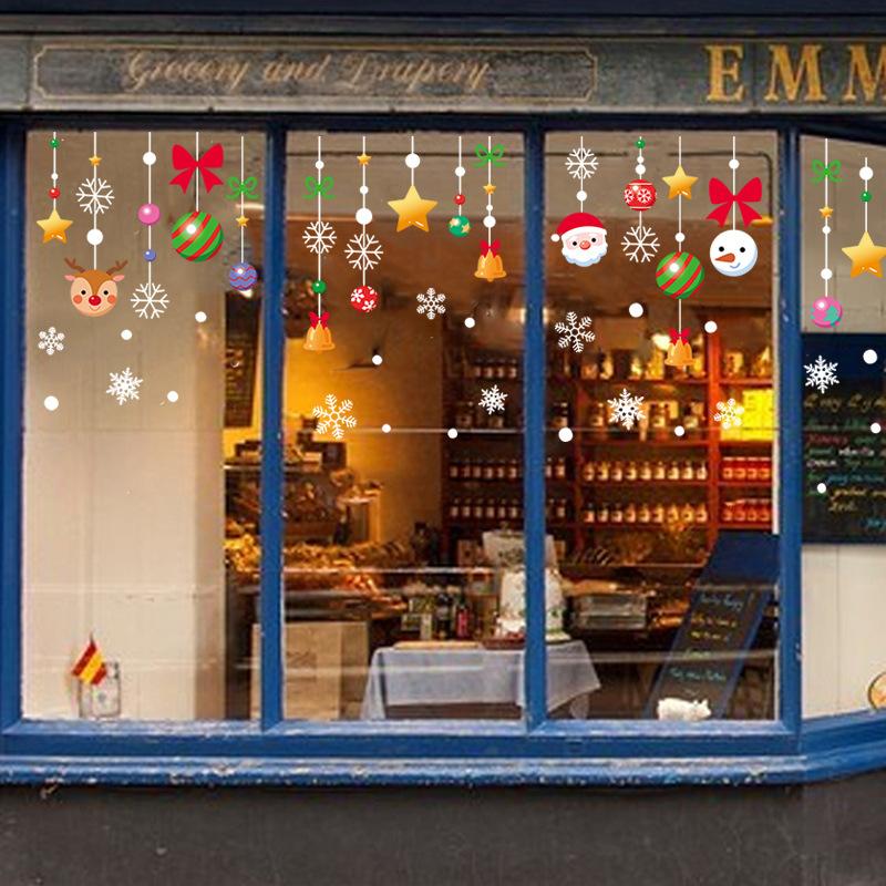 Рождественские наклейки на окна, съемные наклейки с рисунком Санта-Клауса и снежинок, рождественские украшения, принадлежности