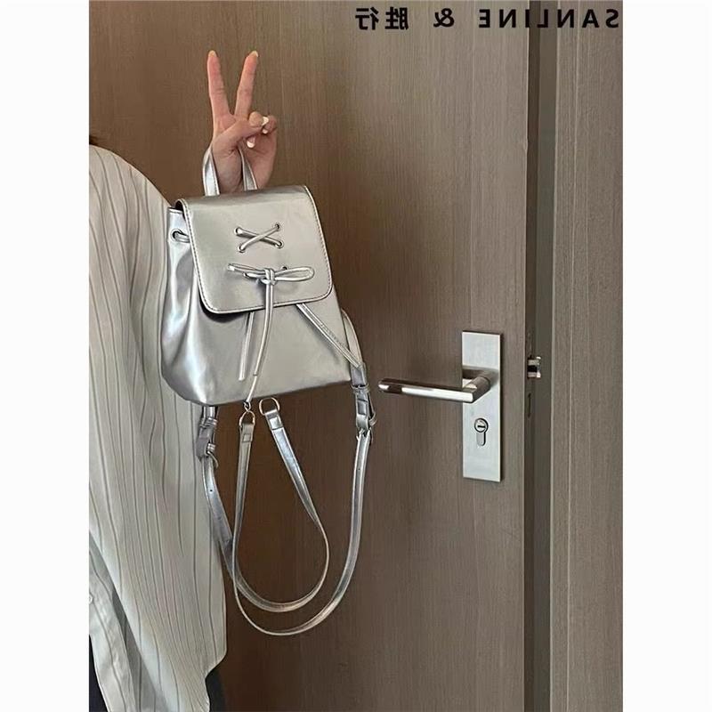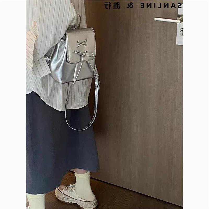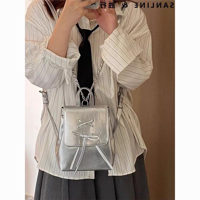 Серебряный рюкзак для студентов колледжа, для мини-шоппинга, маленький рюкзак для девочек, милый школьный рюкзак с бантом, оригинальная ниша