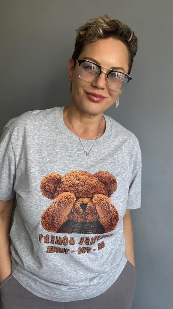 Футболка с круглым вырезом и принтом медведя из хлопка для женщин - повседневная футболка с коротким рукавом для весны и лета