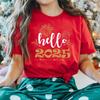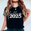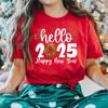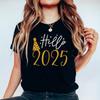 Футболки женские с принтом Hello 2025, модные, повседневные, с коротким рукавом и круглым вырезом, забавные, новогодние, женские топы, праздничные подарки на вечеринку, футболка