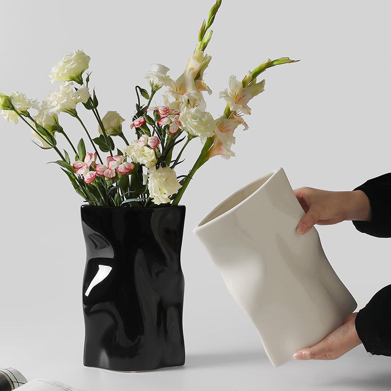 Креативная плиссированная керамическая ваза, украшение для гостиной, ниша, цветочная композиция, гидропонный светильник, роскошный настольный цветочный набор, украшение для дома