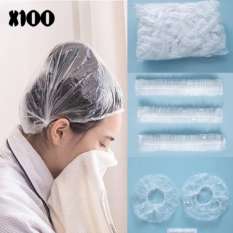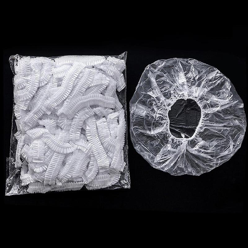 100 шт. Пластиковые водонепроницаемые прозрачные шапочки для волос, шапочки для душа, многоцелевые, утолщающие, эластичные, для ванны, для домашнего салона, портативного использования