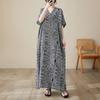 Летнее женское пляжное платье больших размеров из хлопка и льна с принтом и V-образным вырезом, свободное, простое, в стиле отпуска, длинное платье