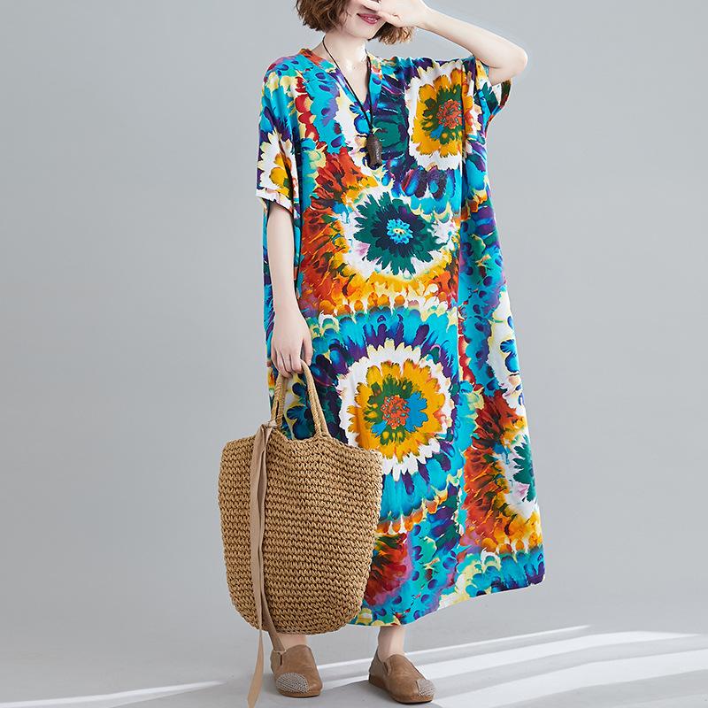 Летнее женское пляжное платье больших размеров из хлопка и льна с принтом и V-образным вырезом, свободное, простое, в стиле отпуска, длинное платье — купить товар онлайн с бесплатной доставкой по всему миру!