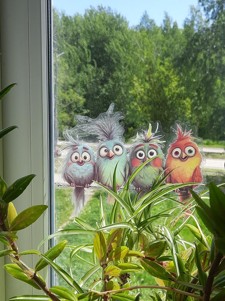 Картинка прелесть, захотела на окошко себе, но немного испортила, когда прилепляла, сверху вверху на фото видно мутная немного пленка, это когда отлепил, чтобы поправить, второй раз уже не такая прозрачная пленочка, так что лучше клеить с первого раза, как надо, и будет идеально