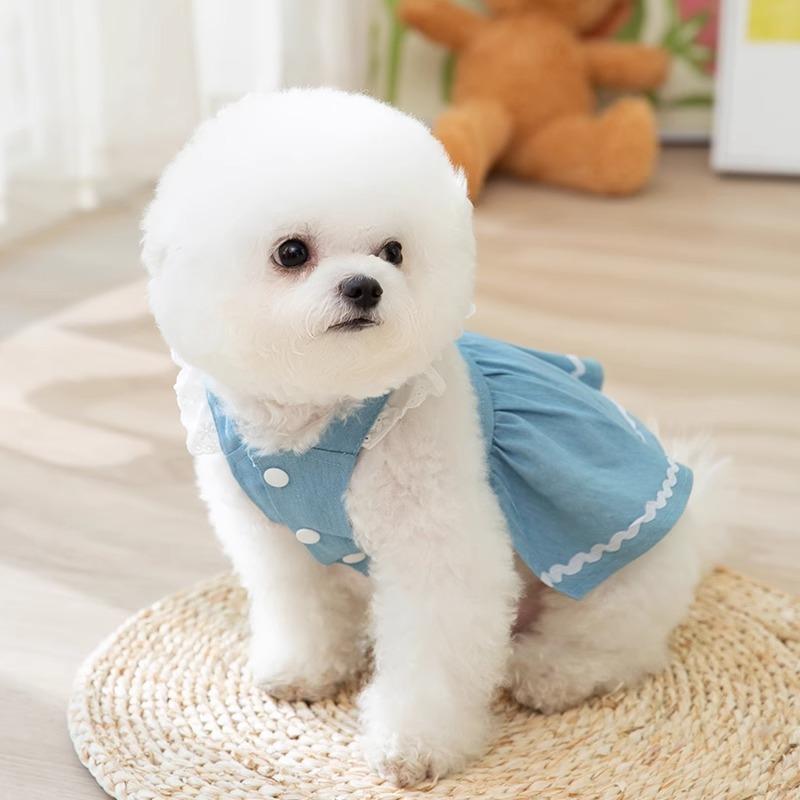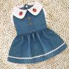 Джинсовое платье для собак с принтом клубники, кружевная милая одежда для собак, летняя юбка для щенка чихуахуа бишон фризе, костюм кошки и собаки с пряжкой