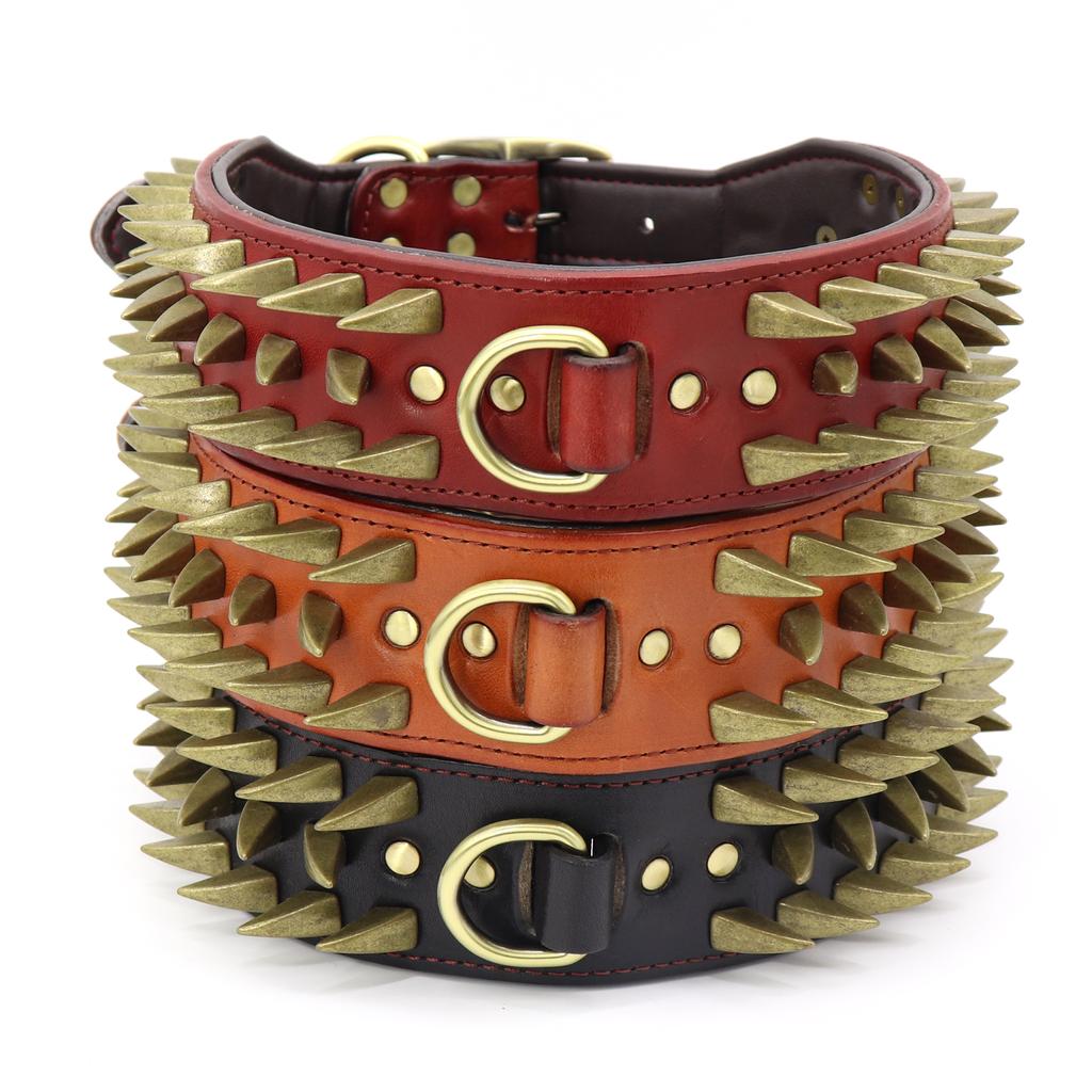 2'' Ширина кожаный ошейник для собак прочный для больших собак острые шипы с заклепками средние и большие собаки ошейники для домашних животных для питбуля немецкой овчарки — купить товар онлайн с бесплатной доставкой по всему миру!