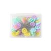 Брала три вида, бабочки, тюльпаны и пуговки. Лучше всего оказались бабочки. Чаще всего у тюльпанов слетают держатели, некоторые тупые, но в общем нравится то, что они длиннее обычных, с круглыми шариками. Применяю в шитье