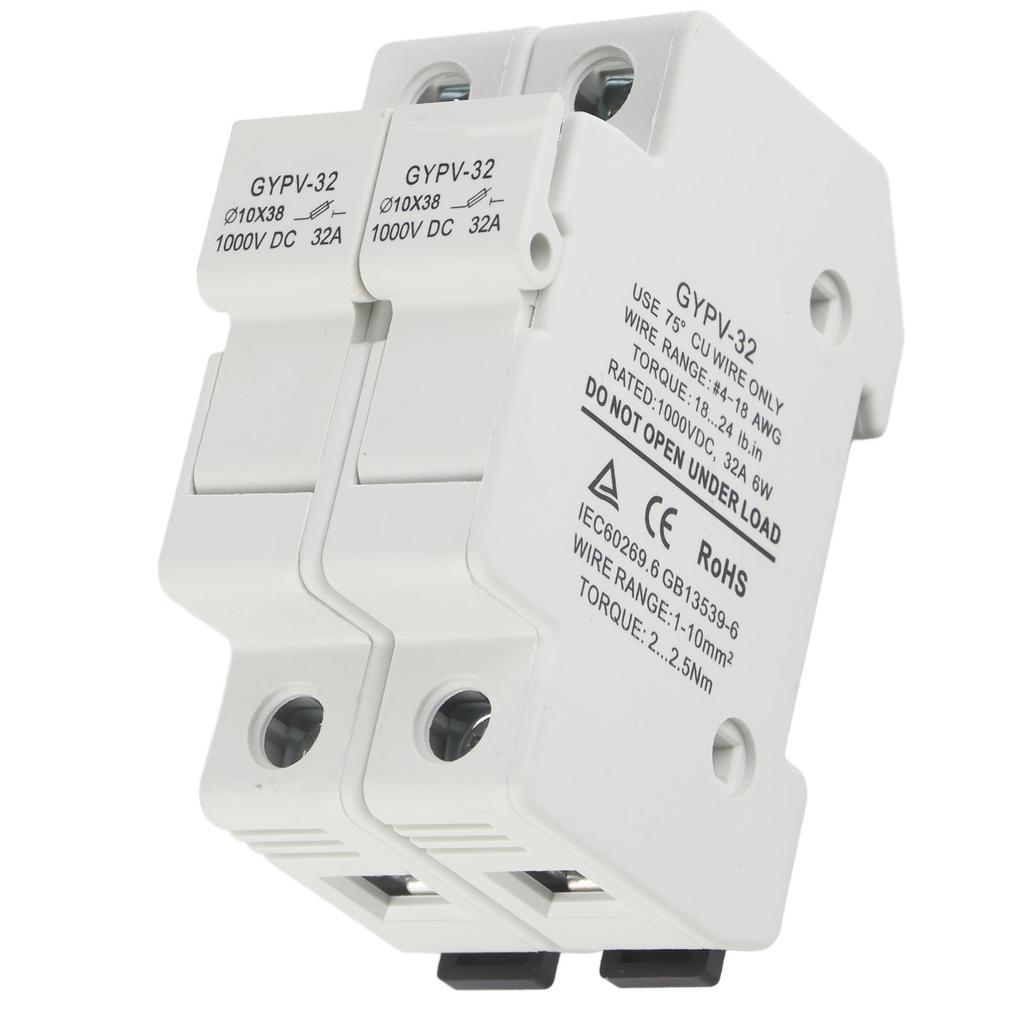 Предохранитель солнечной фотоэлектрической системы 15А, защита от короткого замыкания, защита от взлома, 32А, 2P, держатель фотоэлектрического предохранителя, набор 1000 В постоянного тока