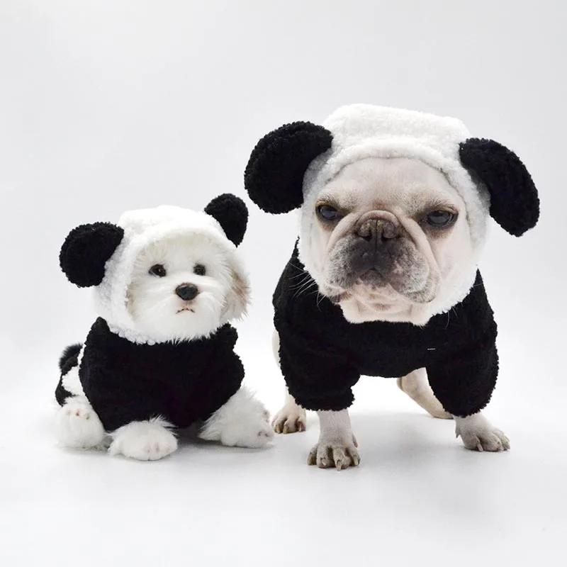 Милая собака Косплей Панда Зимняя одежда Флисовая толстовка с ушками Пуловер Теплое пальто Костюм для маленького питомца Щенок чихуахуа Милая куртка