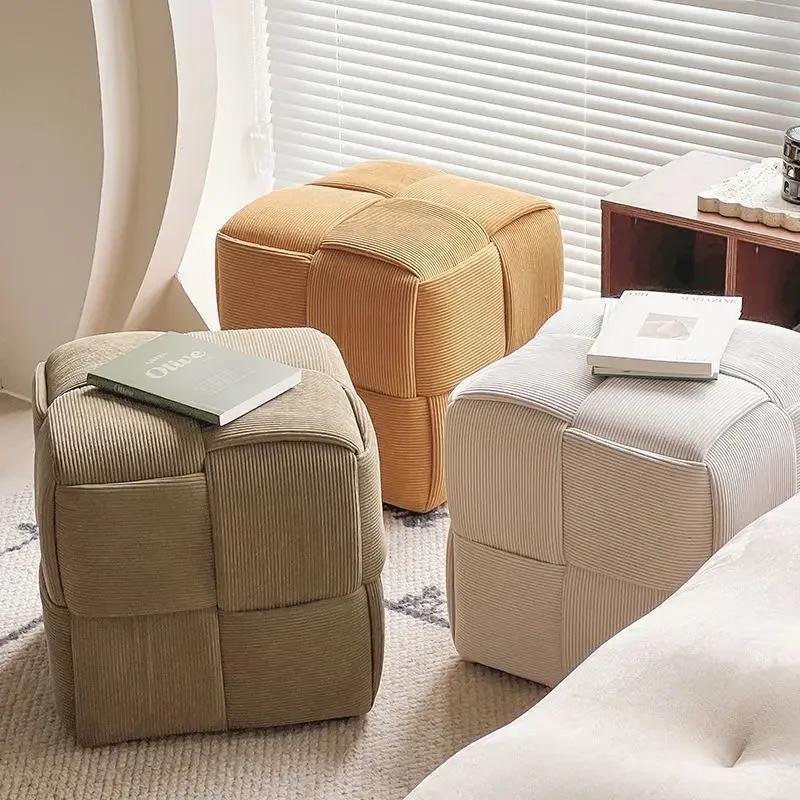 Nordic Stool Декоративный табурет для гостиной Утолщенный вельветовый пуф для ног Табурет для туалетного дивана Модный дизайн обуви Sense