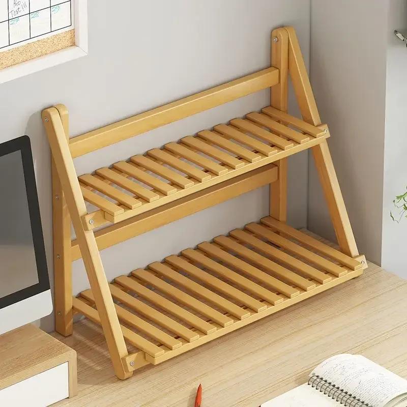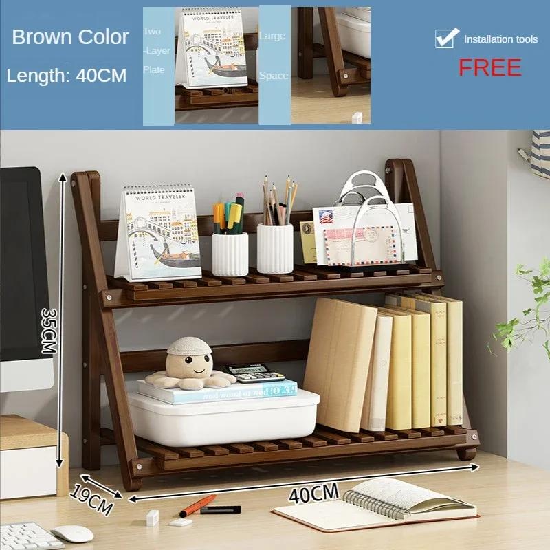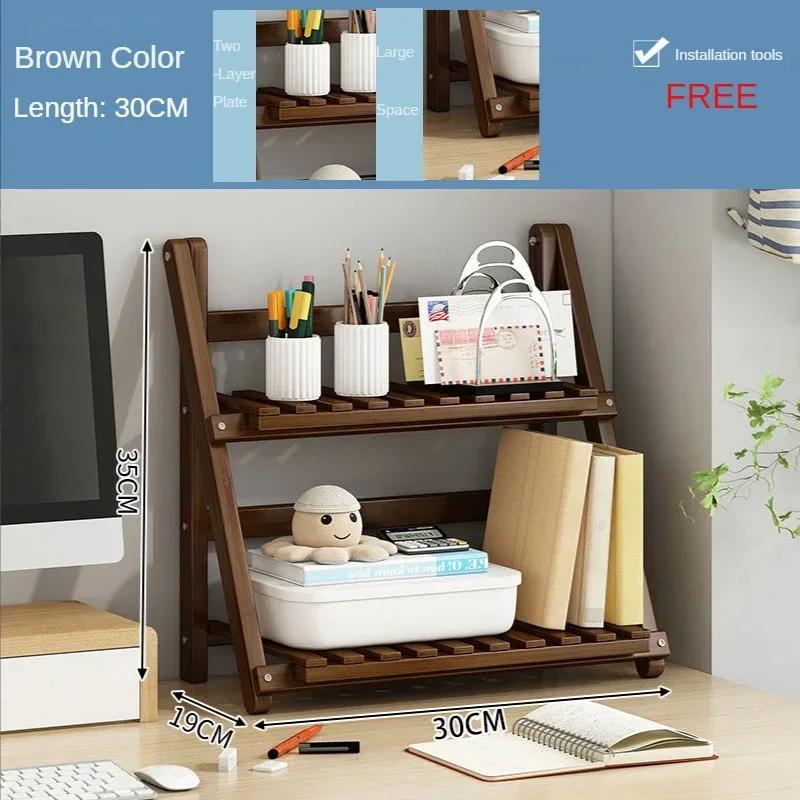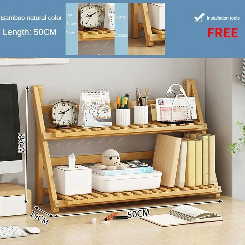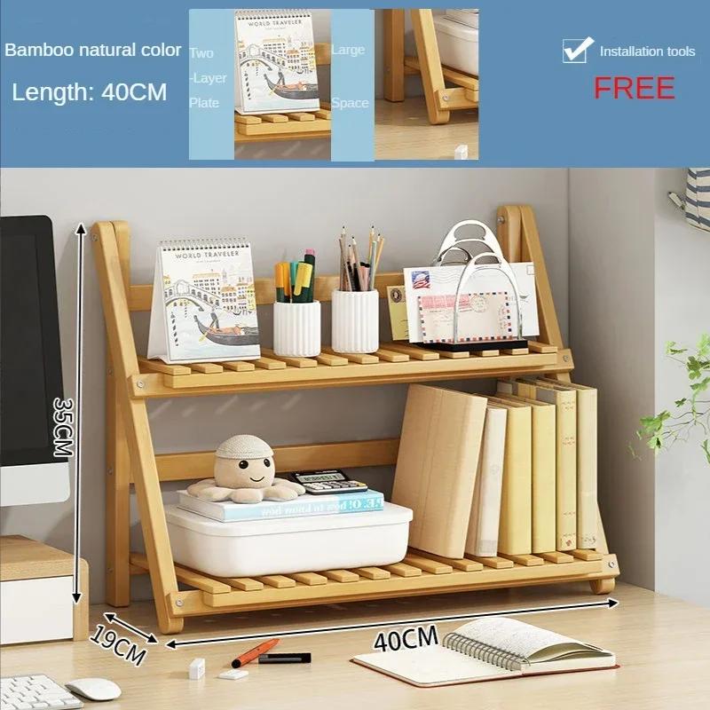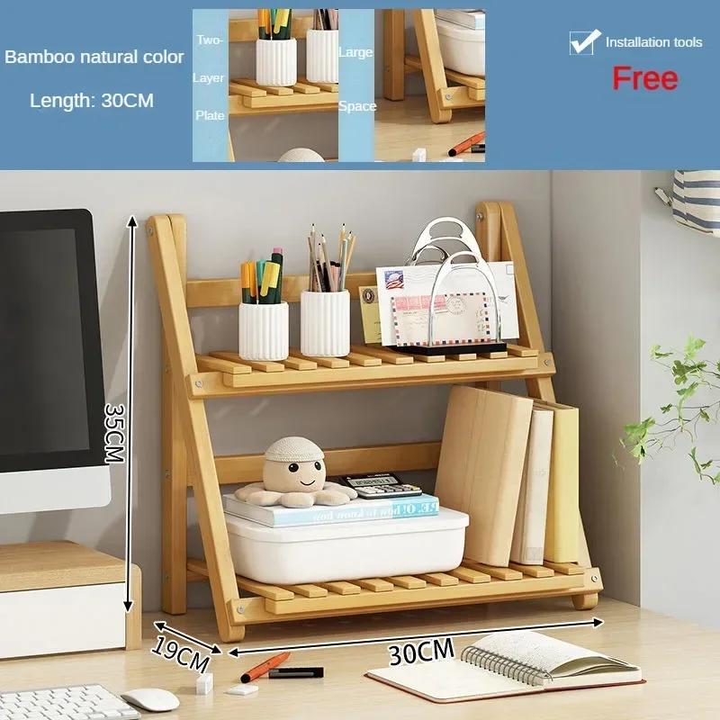 Бамбуковая стойка для хранения канцелярских принадлежностей и офисных многофункциональных мелочей с несколькими ярусами, простая и универсальная книжная полка