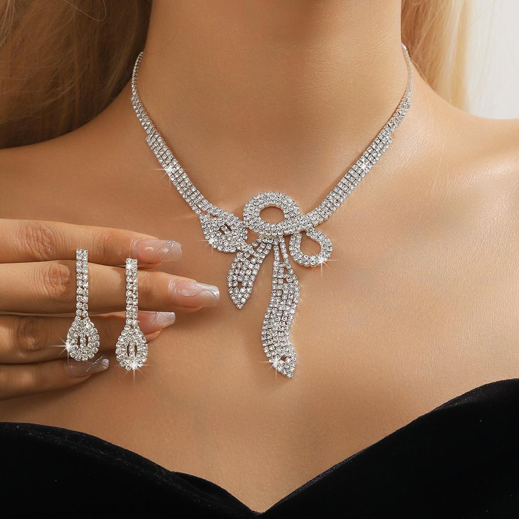 Роскошный сверкающий комплект из ожерелья и серег с бриллиантами, комплект из двух предметов свадебных украшений из ожерелья и серег премиум-класса