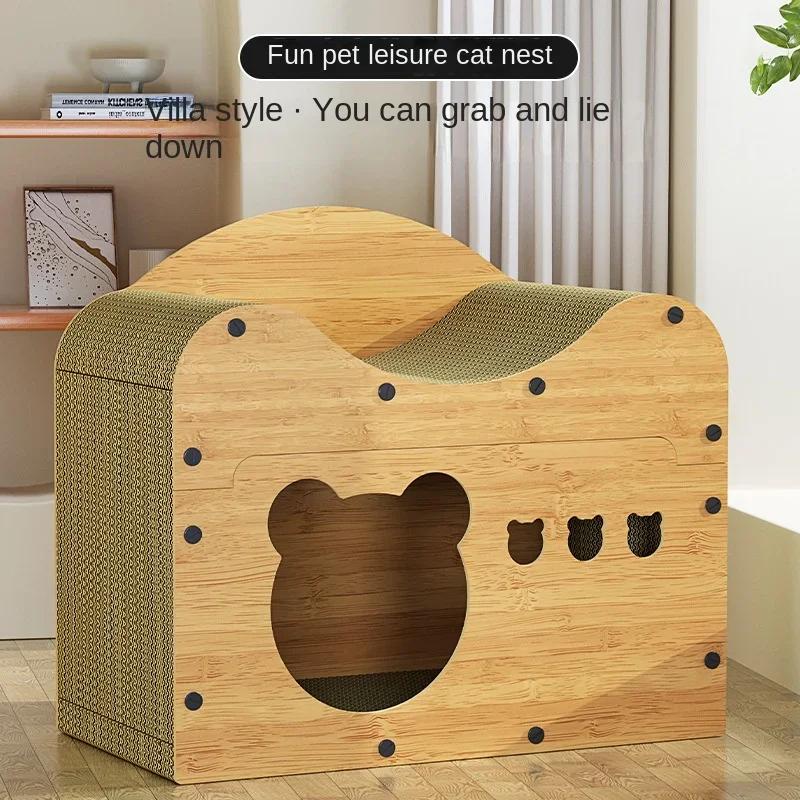 Съемный домик для кошки, кошачья когтеточка, лежанка, большая доска для кошачьих когтеточек, деревянное гнездо для кошек, когтеточка из гофрированной бумаги