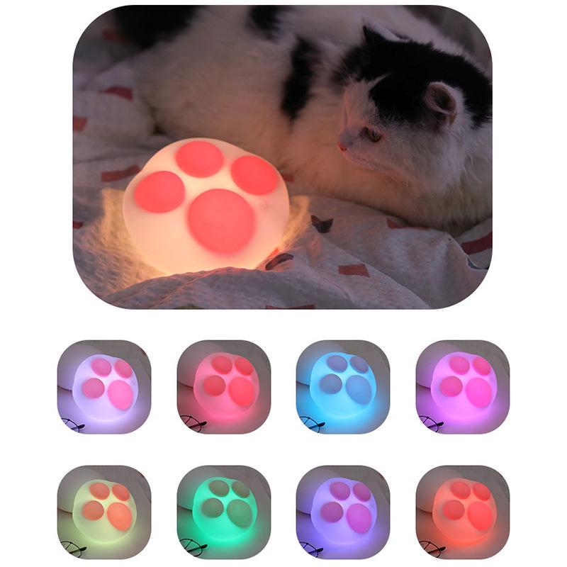 Светодиодный силиконовый ночник в виде кошачьей лапки 3D, милый, заряжаемый, креативный подарок, датчик давления RGB, украшение для спальни для девочек со спальным светом