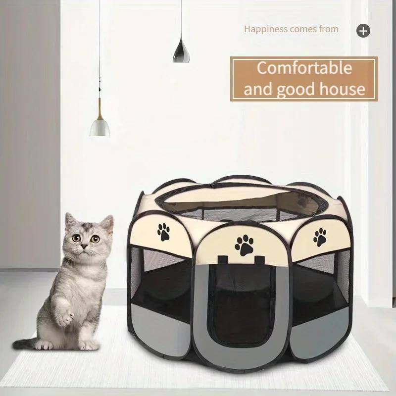 Восьмиугольная клетка-палатка для домашних животных, загон для беременных, кошачий туалет, туалет для щенков, лоток для туалета, рождение, Оксфорд, брюнетка, складная, для собак и кошек, родильная комната