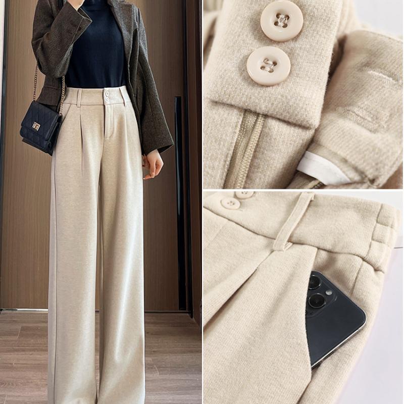 Зимние женские шерстяные брюки, повседневные однотонные шерстяные женские широкие брюки, женские прямые длинные брюки с высокой талией в стиле OL, дропшиппинг