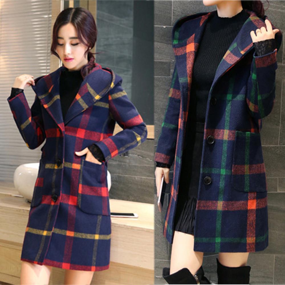 Женская модная куртка в клетку с длинными рукавами и пуговицами, шерстяное пальто с карманом