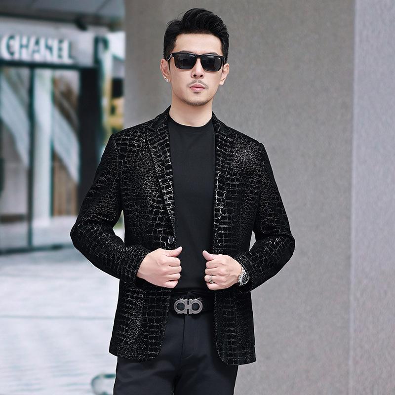 Весенние и осенние мужские куртки из натуральной кожи Костюмы с узором под крокодила Деловые повседневные мужские куртки для пап среднего возраста Модные куртки