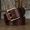 3,8 см телячья кожа натуральная латунная медная пряжка с двойной иглой роскошный толстый ремень высокого качества в стиле ретро для мужчин, дизайнерский ремень для джинсов