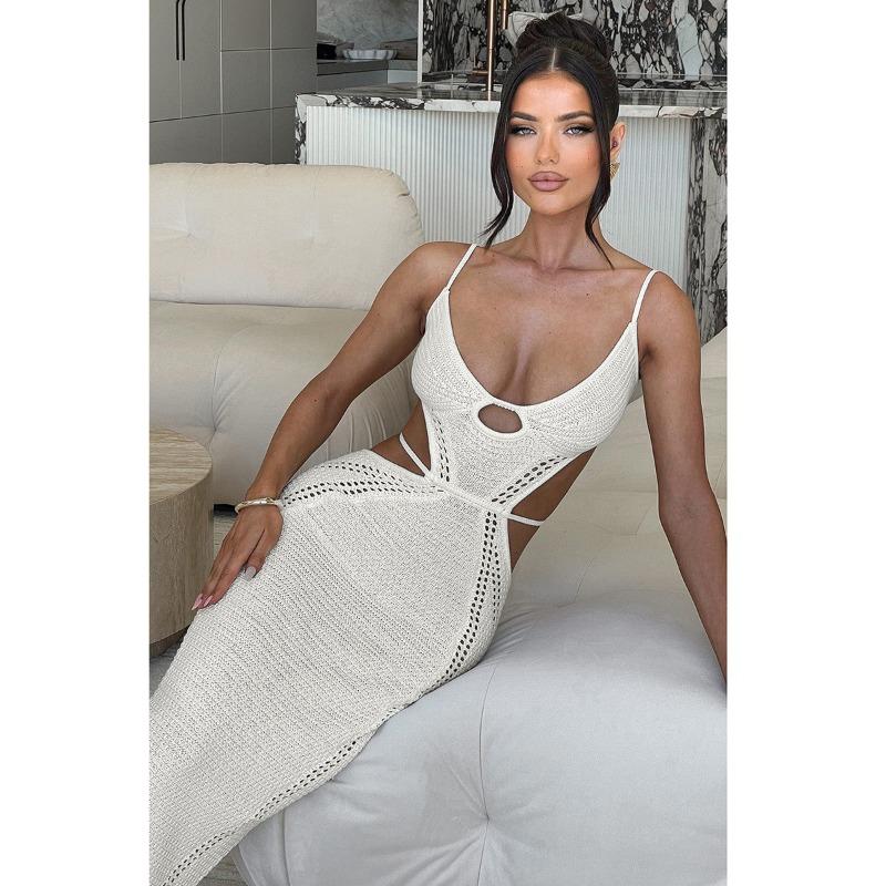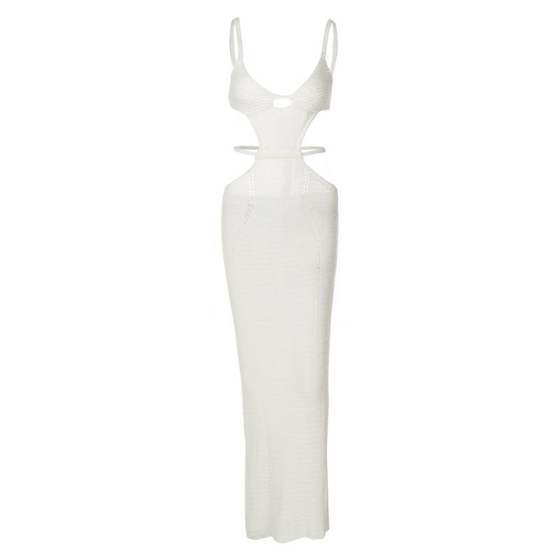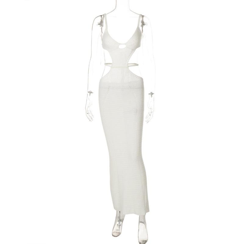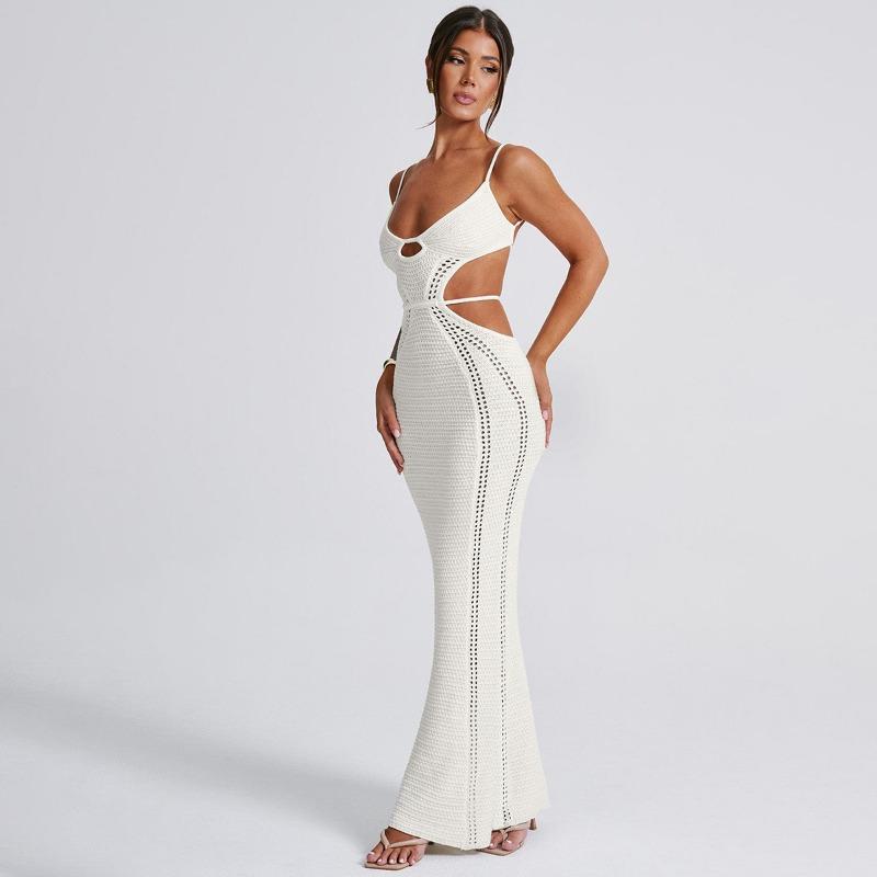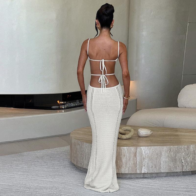 Шерстяное плетеное сексуальное ажурное платье с открытой спиной и шнуровкой, длинное облегающее платье с бретелью через шею для женщин