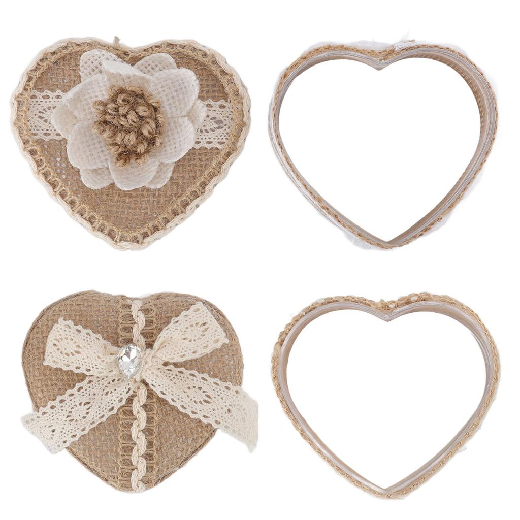 Кольцо в форме сердца Подарочная коробка Льняная отделка Вязаное милое украшение для ювелирных изделий Брошь Серьги