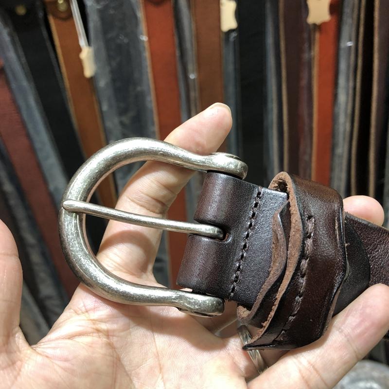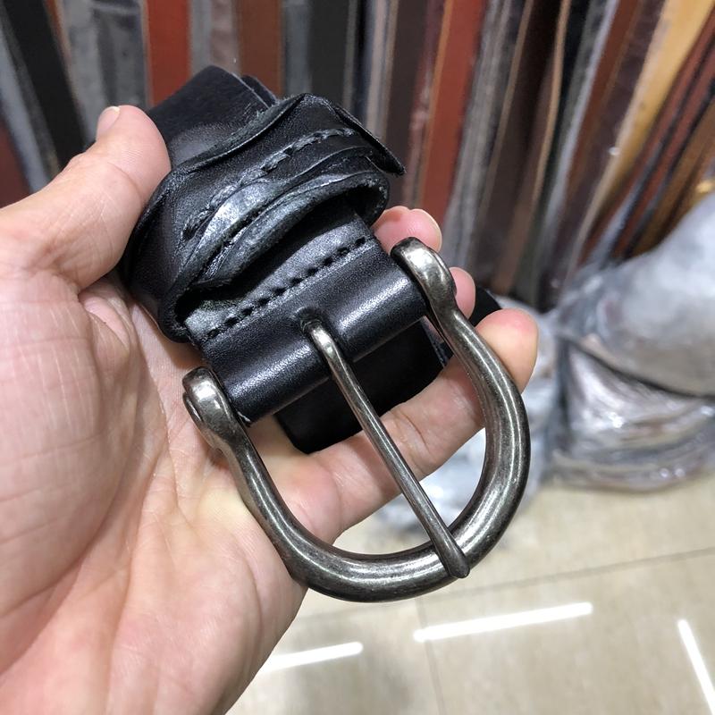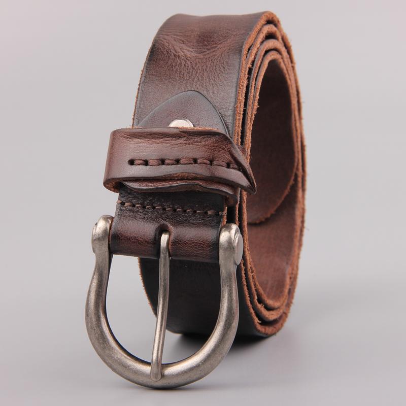 Ремень мужской классический из коровьей кожи Horsebit Luxury Casual Jeans с потертой пряжкой Wild Army Green