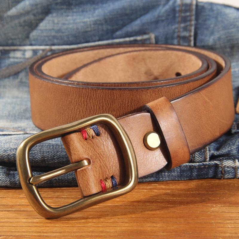 Винтажный толстый ремень из коровьей кожи, мужской ремень из чистой меди с пуговицами, универсальный повседневный ремень из коровьей кожи для джинсов, высококачественный ремень в стиле ретро для мужчин