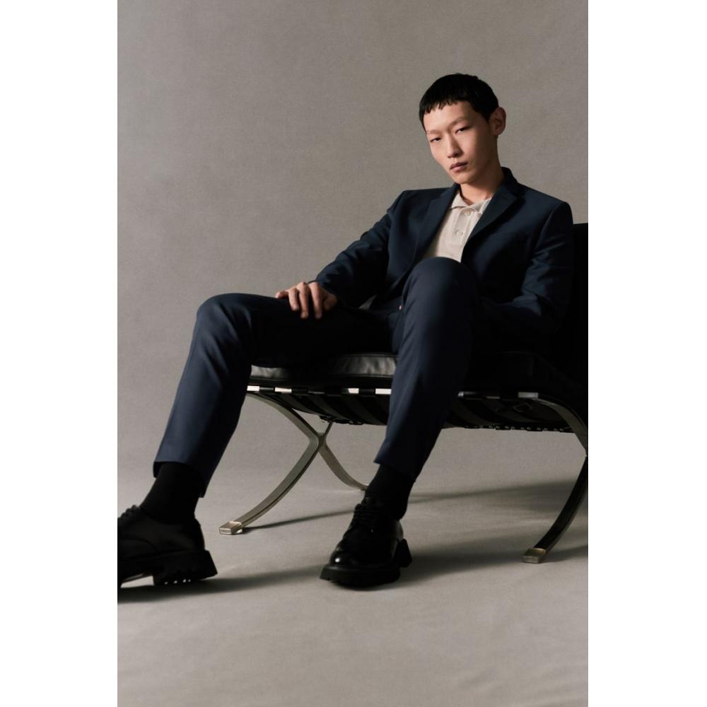 Внешняя ткань: 65% полиэстер, 33% вискоза, 2% эластан Подкладка карманов: 91% полиэстер, 9% хлопок.