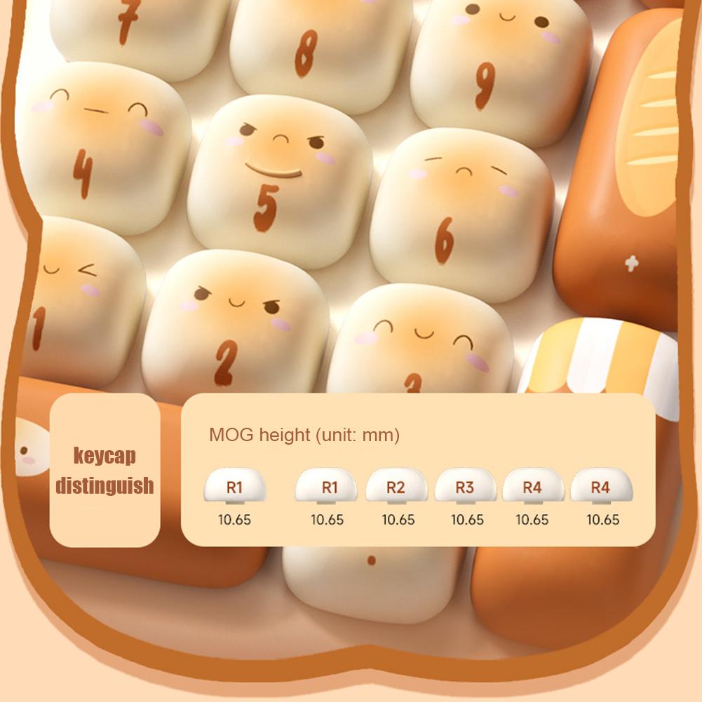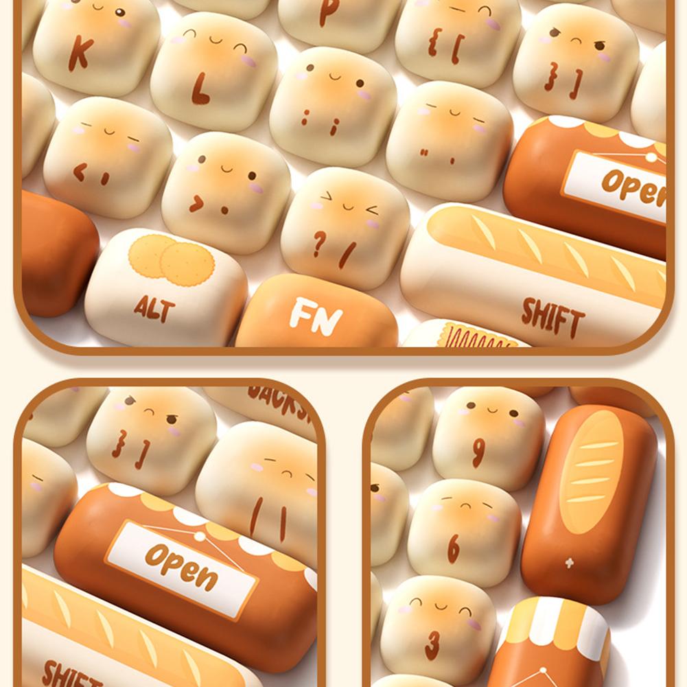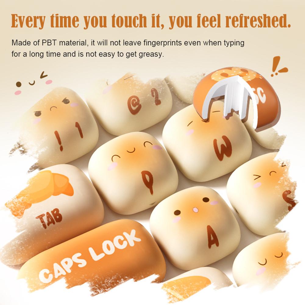 Креативный дизайн: Уникальные клавишные колпачки Mantou Paradise, на каждой клавише изображен милый рисунок хлеба, что добавит веселья вашему рабочему столу.