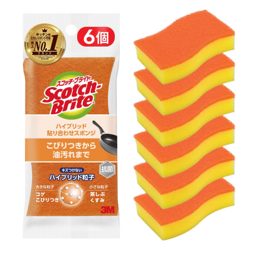 [Эксклюзивно для .co.jp] 3M Губка для кухни, не царапающая, антибактериальная, гибридная, оранжевая, 6 шт., Scotch Brite HB-21KE-H-6P, общая уборка