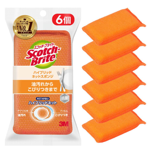 [Эксклюзивно для .co.jp] 3M Губка для кухни, не царапающая, антибактериальная, гибридная, сетка, оранжевая, 6 шт., Scotch Brite HBNT, общая уборка
