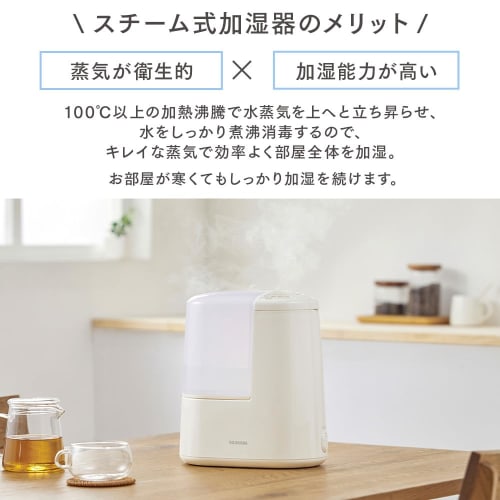 IRIS OHYAMA Увлажнитель парового типа (Тип нагрева) Объем увлажнения 260 мл Емкость бака 2,4 л 7 татами 9 часов непрерывного увлажнения Aroma Compa