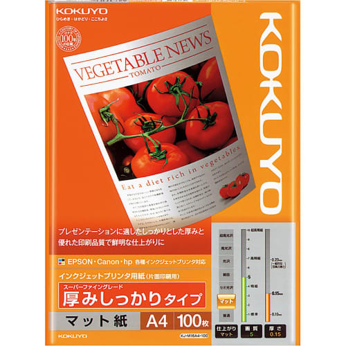 KOKUYO Copy Paper A4 Matte Paper Thick 100 Sheets Inkjet Printer Paper KJ-M16A4-100
