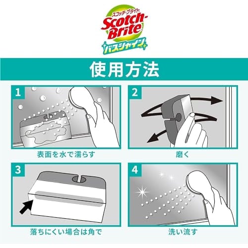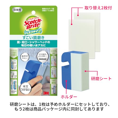 [Эксклюзивно для .co.jp] 3M Чистка ванной комнаты, удаление накипи, пятен от воды, потрясающая полировка зеркал, для тела, 3 листа, Scotch Brite Bath Shine MC-02+R 2P
