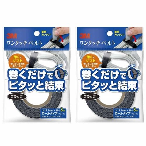 Ремень One Touch Belt 3M, черный, упаковка из 2 рулонов, ширина 12,7 мм, длина 3 м NC-2272R3-2P (Многоразовая кабельная стяжка с креплением «липучка» для электропроводки)