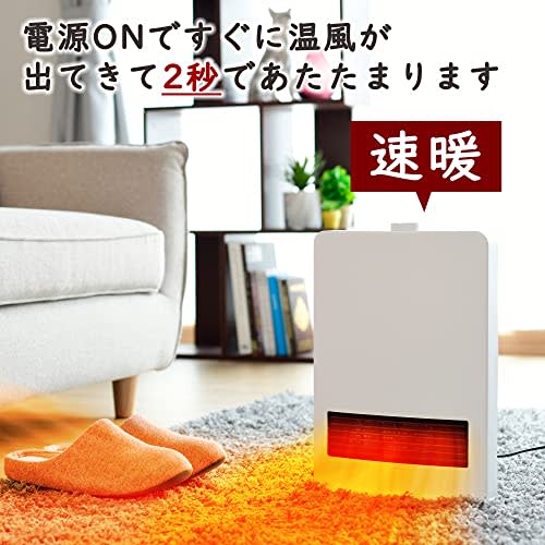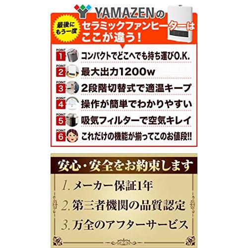 Yamazen Ceramic Fan Heater, Ceramic Heater, 1200W, Small, Quick Heating, 2-Stage Output Switch, Fall Off Switch, Feet, Toilet, Dressing Room, White DF