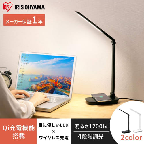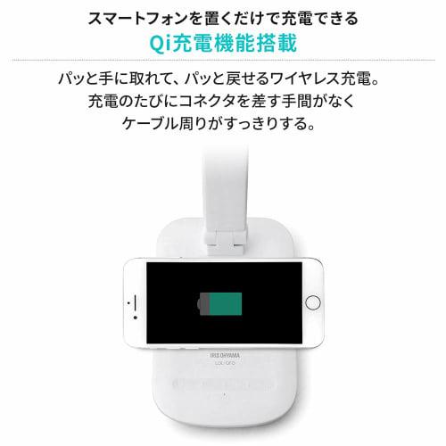 [Зарядите свой смартфон, просто положив его] Настольная лампа Iris Ohyama с беспроводной зарядкой Qi, 4 уровня затемнения, высокая цветопередача, LDL-QFD-W, белый цвет