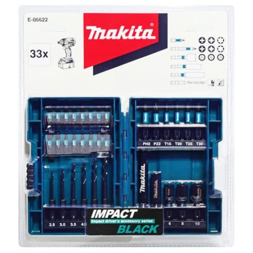 Набор из 33 бит для ударного шуруповерта Makita с шестигранным хвостовиком 6,35 мм, в комплекте кейс E-06622
