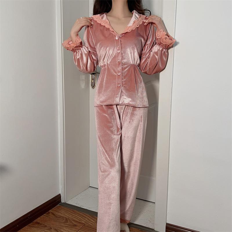 Пижама с лацканами и пуговицами, сексуальная пижама на пуговицах, женская ночная рубашка, велюровый костюм из 2 предметов, рубашка и брюки, повседневная домашняя одежда