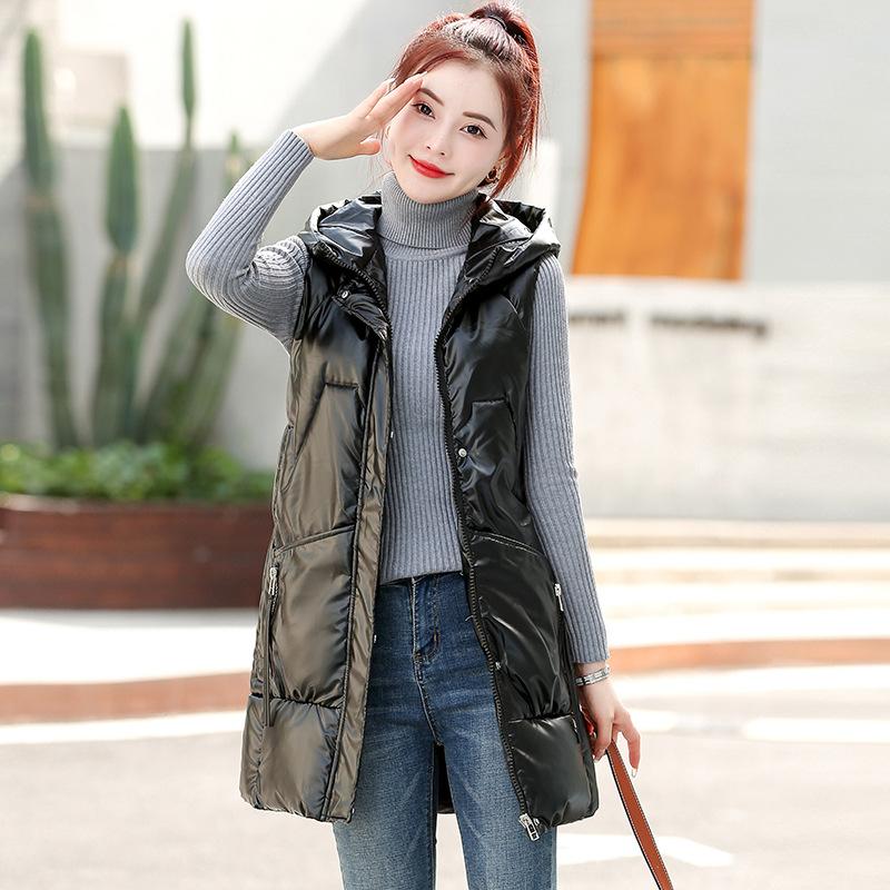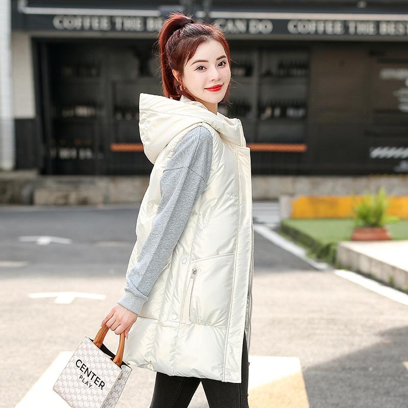Зимний новый жилет средней длины из хлопка для женщин корейской версии, свободный двухсторонний жилет с золотой пленкой, кардиган