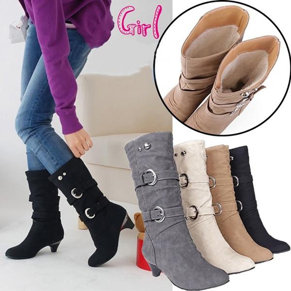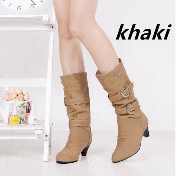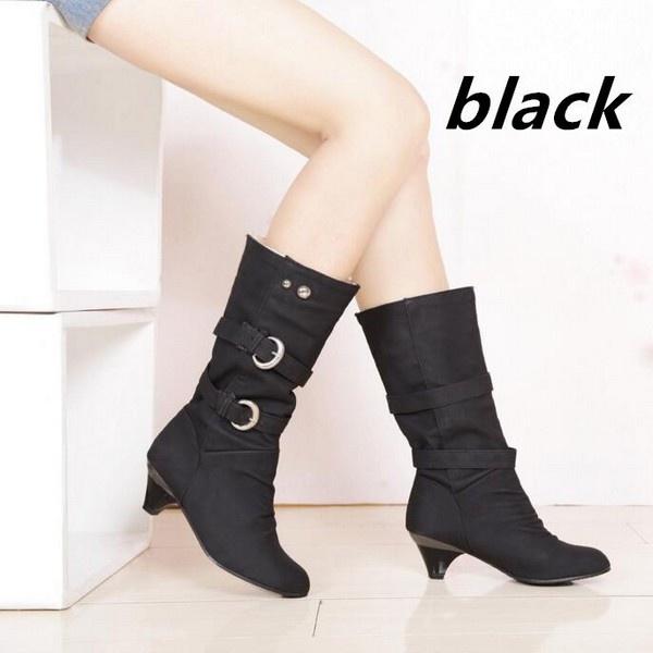 Осенне-зимняя женская модная повседневная обувь Ботинки средней высоты Ботинки Martin Длинные ботинки Зимние ботинки Большие размеры