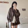 Винтажная кожаная женская укороченная куртка свободного кроя в корейском стиле, стильная куртка для мотоциклистов, миниатюрная, осень, новое поступление