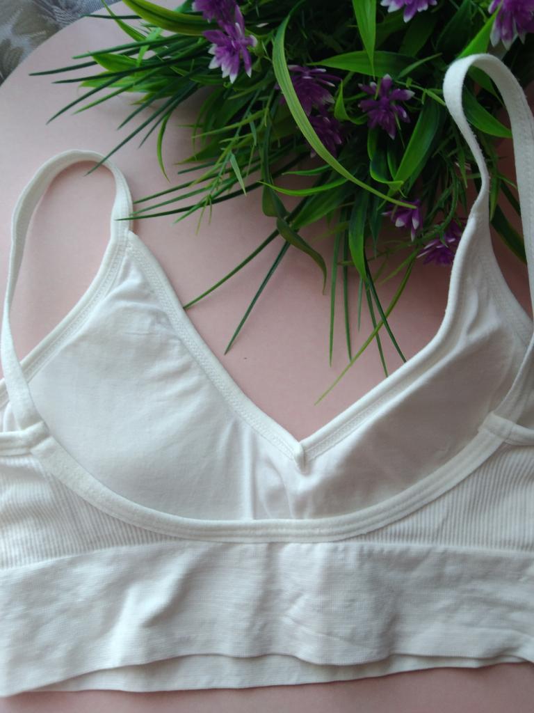 Мягкий приятный к телу топ. С дополнительными вставками в чашечках, которые можно убрать, если необходимо. Лямки не регулируются, но это и не нужно, так как они уже необходимой длины. На объем груди 88 - размер чуть великоват, но это моя ошибка, тк привыкла заказывать чуть больше - в данном случае берите размер в размер, не ошибетесь.