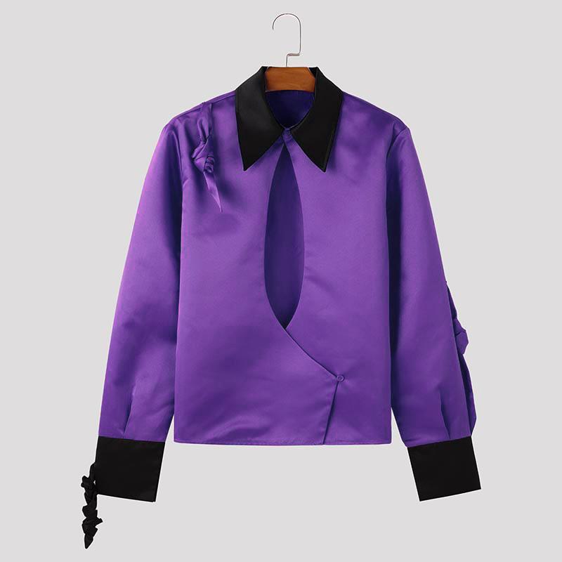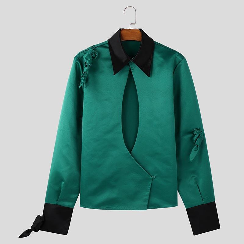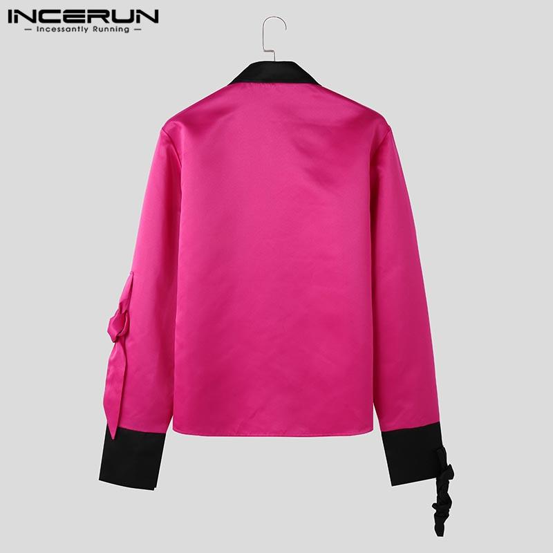 INCERUN Мужские рубашки с длинным рукавом и лацканами из сатина, однотонные, с повязкой спереди, с крестообразным вырезом