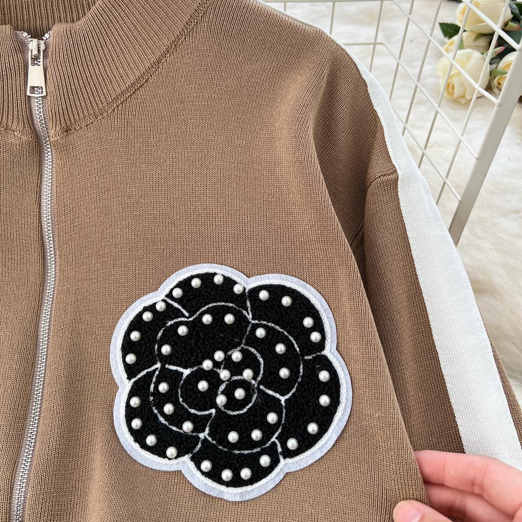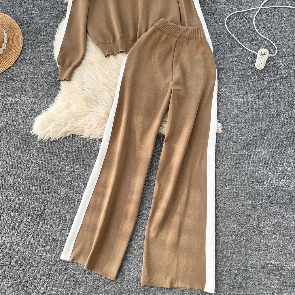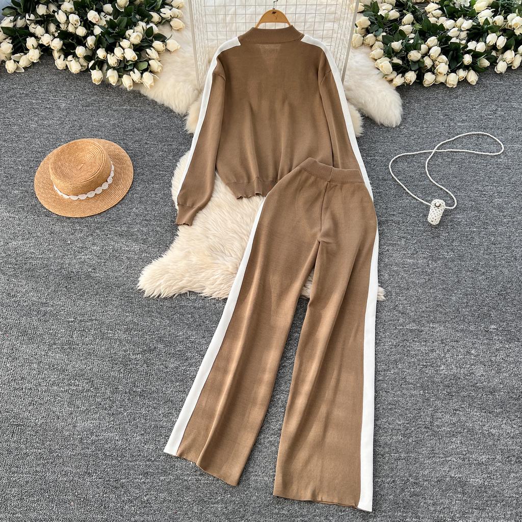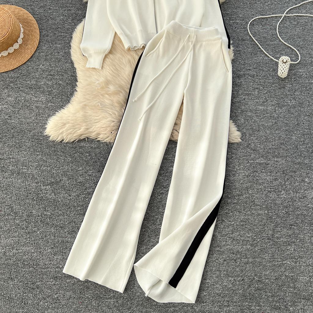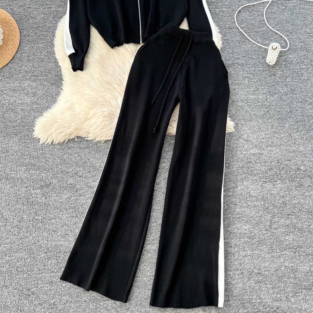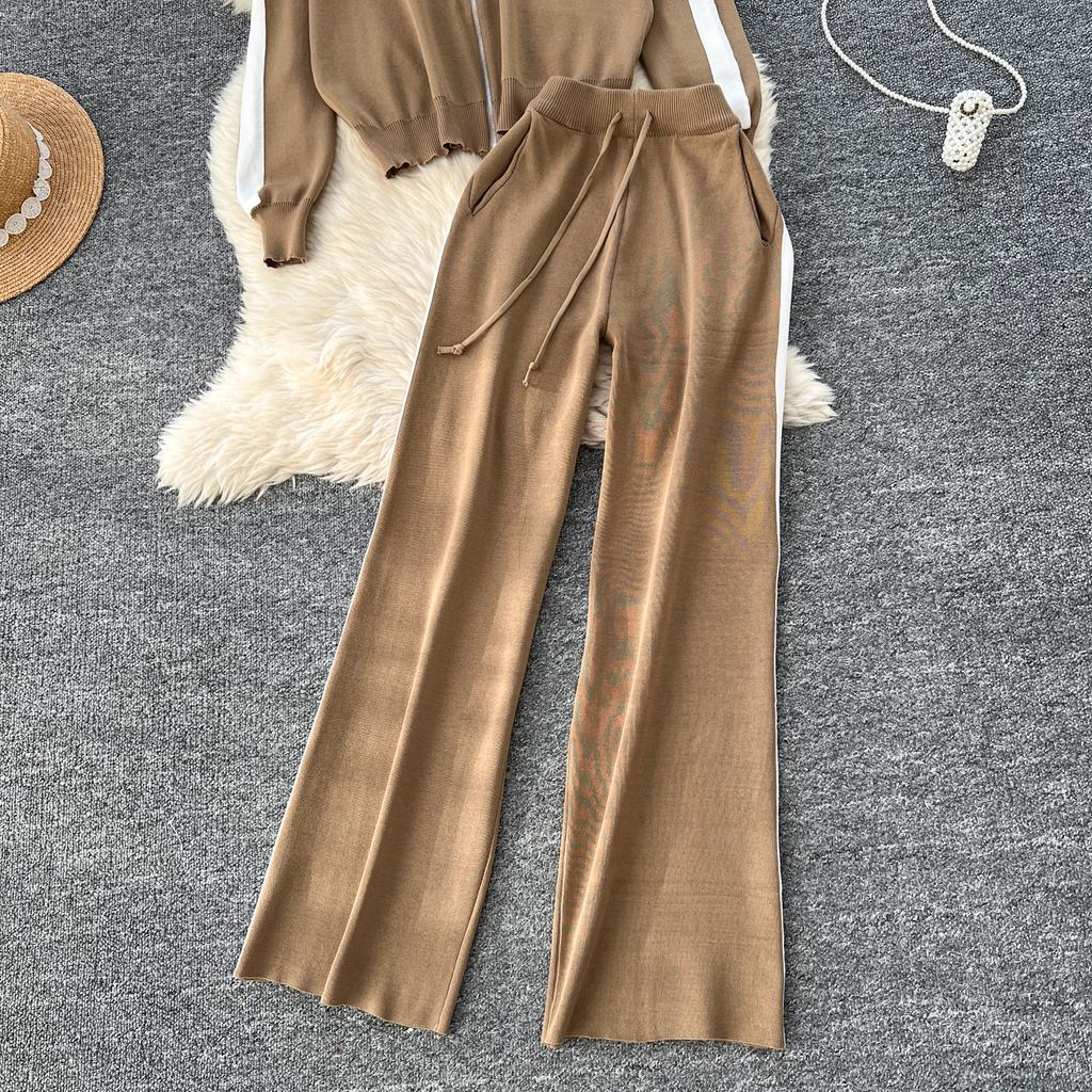 Осенне-зимний вышитый цветочный вязаный свитер, брюки, комплект из двух предметов, женская куртка на молнии, пальто и брюки длиной до щиколотки, спортивный костюм