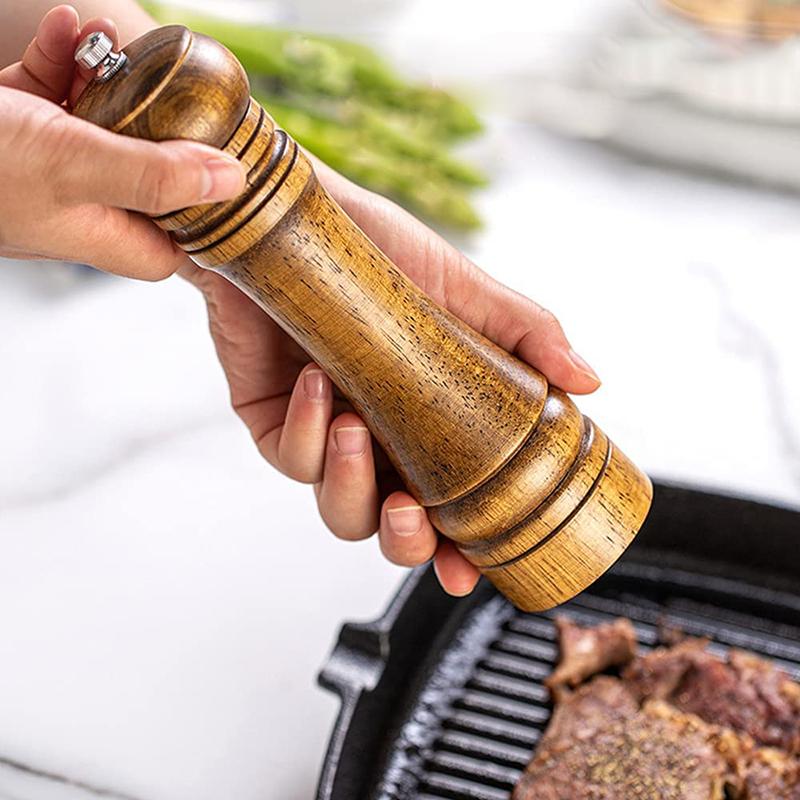 8-дюймовая мельница для перца Соль и перец Деревянные мельницы Сильная регулируемая керамическая мельница Кухонный инструмент для приготовления пищи и барбекю