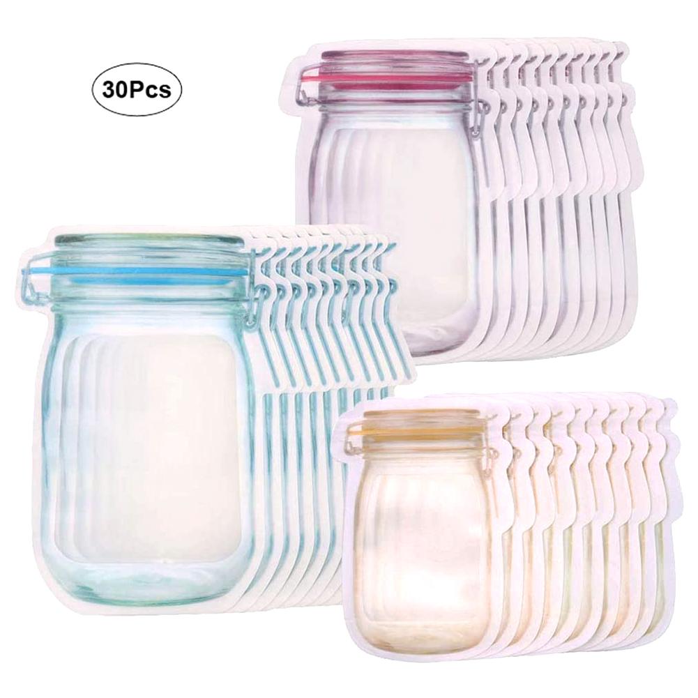 30 шт. многоразовых банок Мейсона для бутылок, мешков для орехов, конфет, печенья, мешков с водонепроницаемой печатью, мешков для хранения свежих продуктов, закусок, сэндвичей, мешков с застежкой-молнией