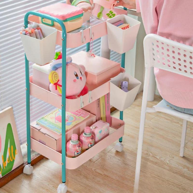 3-слойная домашняя тележка контрастного цвета, полка для хранения, многослойная передвижная тележка, стойка для хранения косметики и закусок, мобильная полка для ванной комнаты