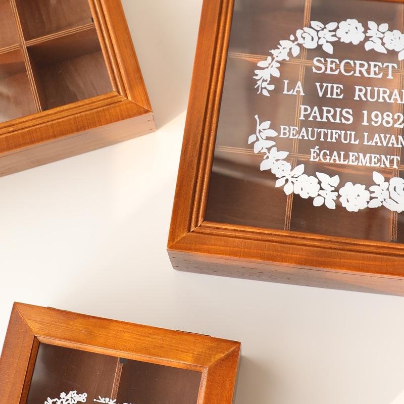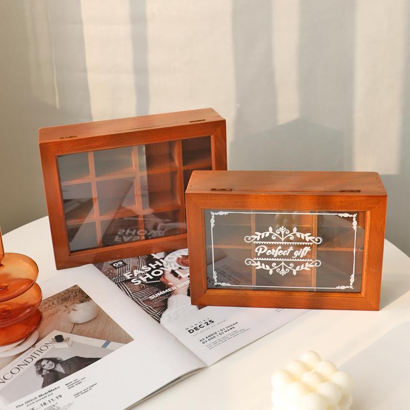Винтажная скандинавская деревянная настольная шкатулка для хранения ювелирных изделий с откидной крышкой, стеклянная крышка с узором из девяти сеток
